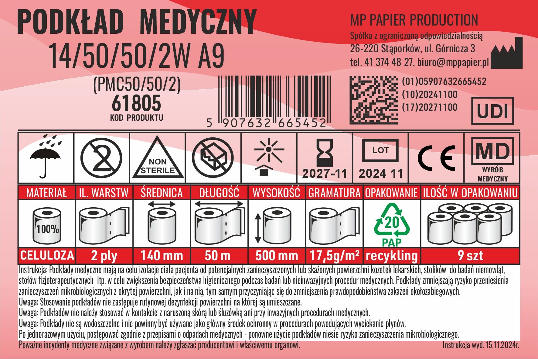 PODKŁAD MEDYCZNY 14/50/50/2W A9 | PMC50/50/2 | 8024929491321 | BIAŁY | CELULOZA | 2 | 17,5 | 50 | 500 | 140 | 40 | KLEJ | 9 | 30 | |||